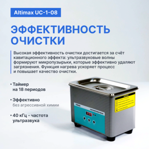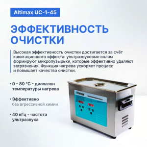 Ультразвуковая ванна с дегазацией Altimax UCD-1-65 представляет собой продвинутый ультразвуковой очиститель, поддерживающий дегазацию и обеспечивающий надежный и бережный процесс очистки.
