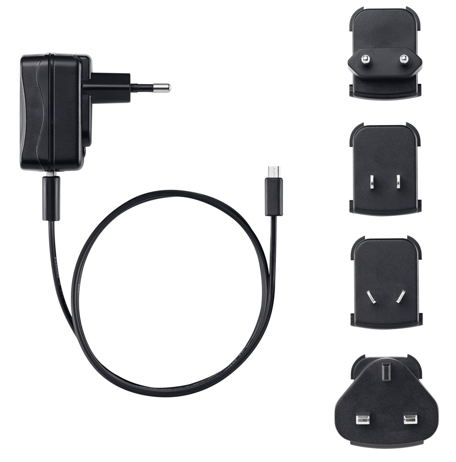 230 V AC / 5 V DC (2 A), micro USB, for the use in USA, CA, AU, Europe, UK, CN, Korea