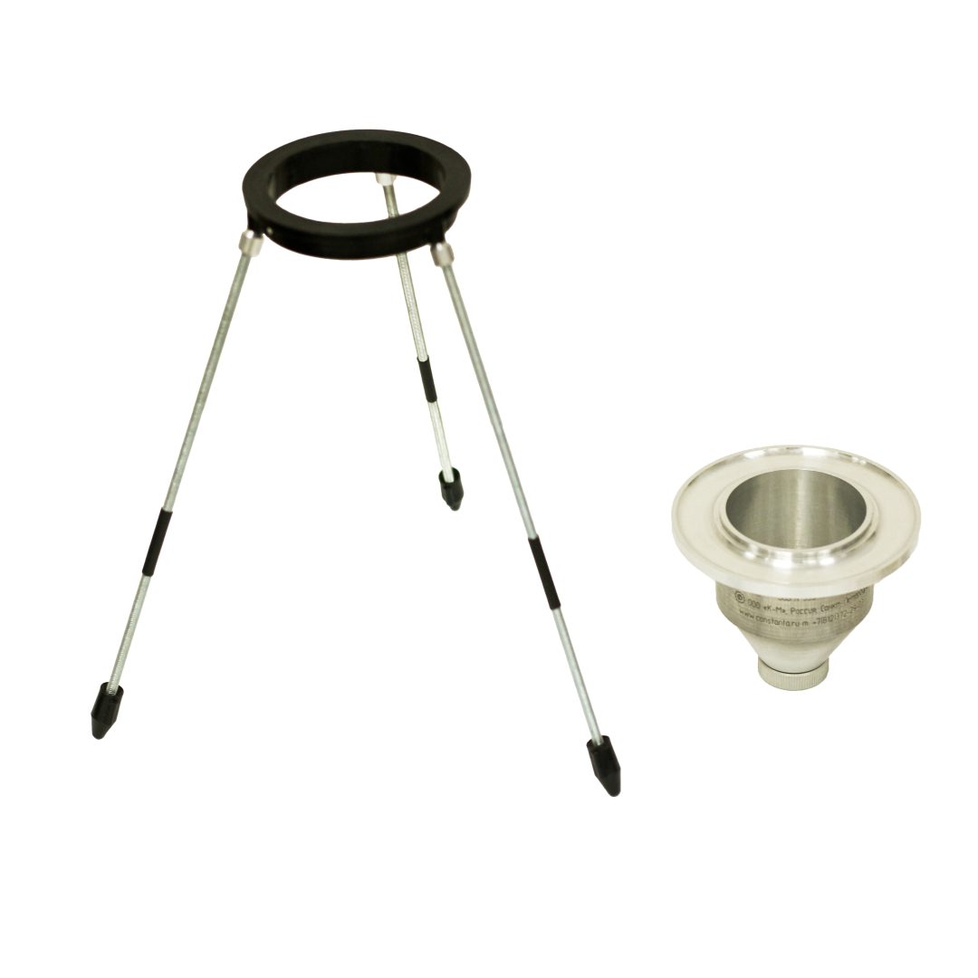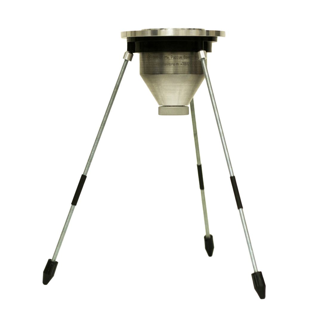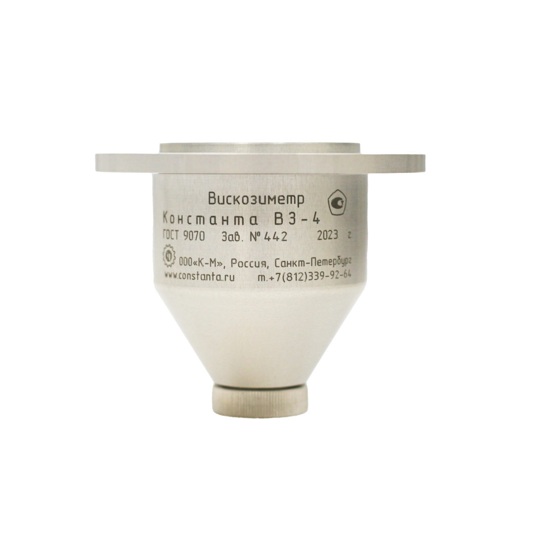 Вискозиметр представляет собой резервуар цилиндрической формы, переходящий внизу в полый конус со съемным соплом. Сопло выполнено из нержавеющей стали. Прибор устанавливается на штативе с регулировочными ножками (тренога).