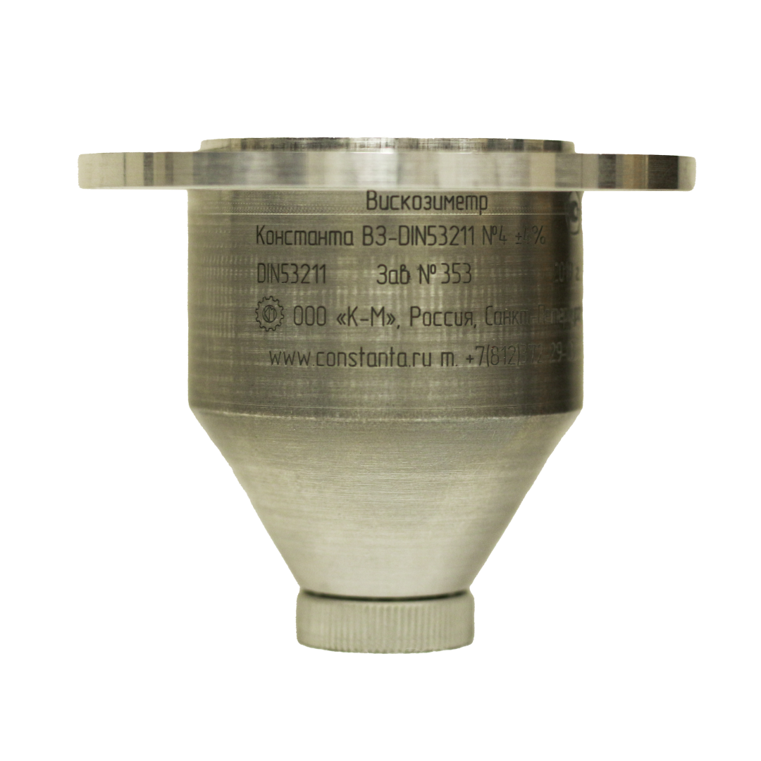 Вискозиметр представляет собой резервуар цилиндрической формы, переходящий внизу в полый конус со съемным соплом. Сопло выполнено из нержавеющей стали. Прибор устанавливается на штативе с регулировочными ножками (тренога).