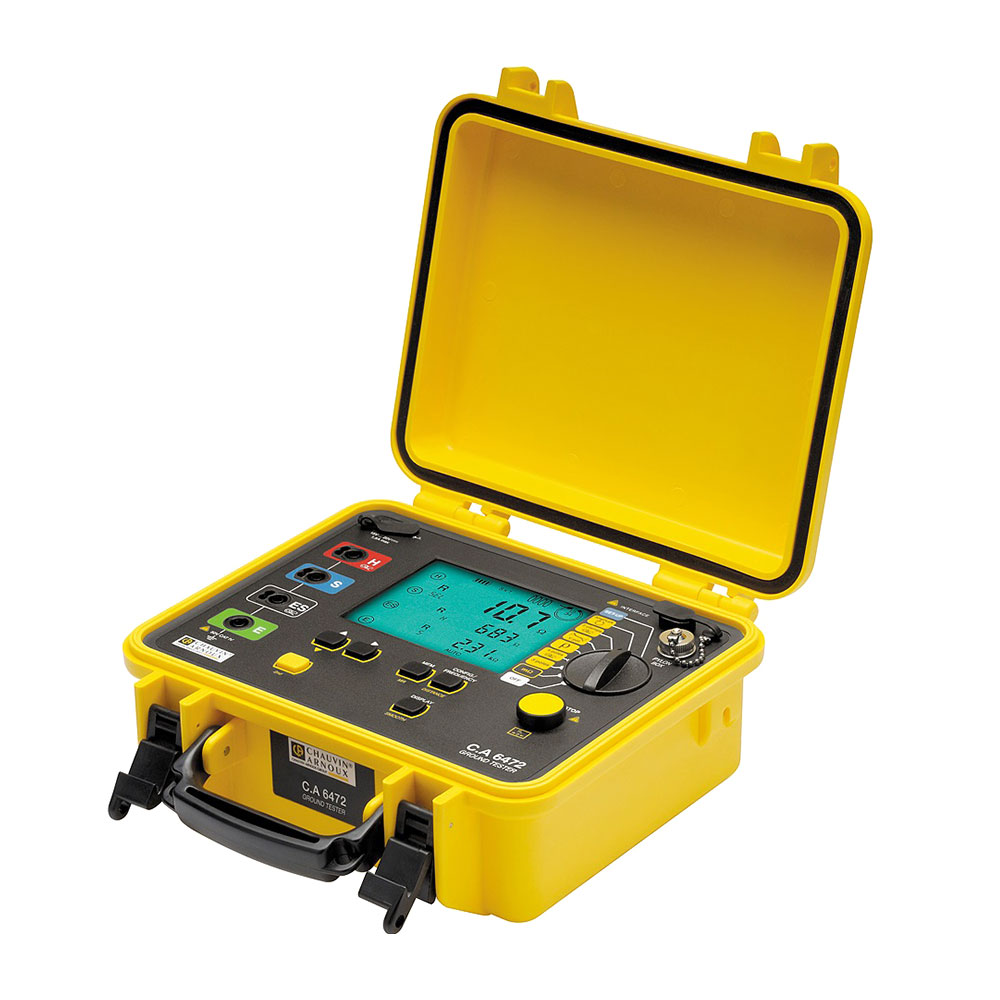 Измеритель C.A 6472 предназначен для проведения проверок устройств заземления и способен определять следующие параметры: сопротивление заземления (с использованием 3-х электродов), сопротивление грунта от 0,01 Ом до 100 кОм, связь между заземлителями, сопротивление/проводимость, контур заземления (двумя клещами), потенциал грунта, коэффициент соединения заземлителей и удельное сопротивление грунта. При этом последние два значения рассчитываются автоматически.