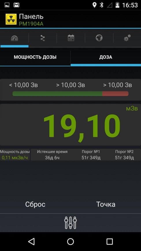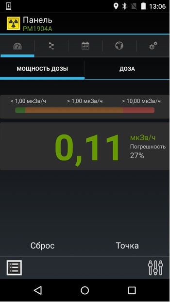 измерение: от 0,01 мкЗв/ч до 10 мЗв/ч