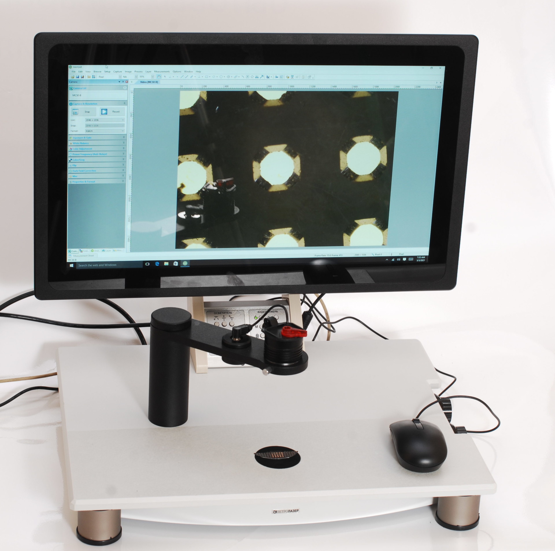 Изображения выводятся на моноблочный промышленный компьютер с монитором диагональю 21 дюйм, высокого разрешения, с антибликовым покрытием;