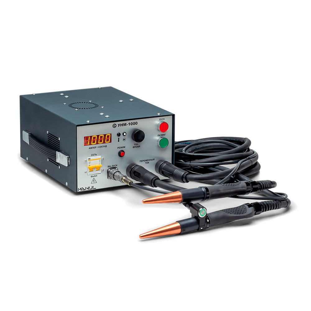 Дефектоскоп УНМ-1000 выполнен в формате портативного прибора, что позволяет контролировать качество изделий из ферромагнитных материалов как в производственных, так и в лабораторных условиях. В базовый комплект оборудования для магнитопорошковой дефектоскопии входит намагничивающее устройство УНМ-1000, силовой кабель для питания от однофазной сети переменного тока напряжением 220 В и техническая документация. По желанию заказчика могут быть дополнительно поставлены электроконтакты и намагничивающий кабель переменного тока.