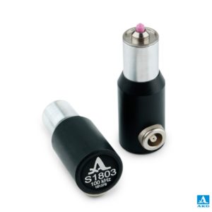 Для возбуждения продольных волн; низкочастотный, короткоимпульсный, малошумящий с жидкостным контактом.