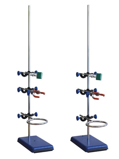 Штатив Бунзена ШЛ-1. Лабораторный штатив Бунзена ШЛ-1 являются вспомогательным оборудованием для сборки, установки, закрепления различных лабораторных ёмкостей (колб, пробирок и т.д.) и приборов. В состав штатива  ШЛ-1 входит: Стойка — 700 мм; Лапка-держатель двупалая с плоскими губками, захват 20 мм; Лапка-держатель трехпалая, захват 77 мм; Кольцо диаметром 85 мм; Три крестообразные муфты для крепления; Чугунное основание с прорезиненными вставками, возможность установки стойки по центру, размер — 200х120 мм.