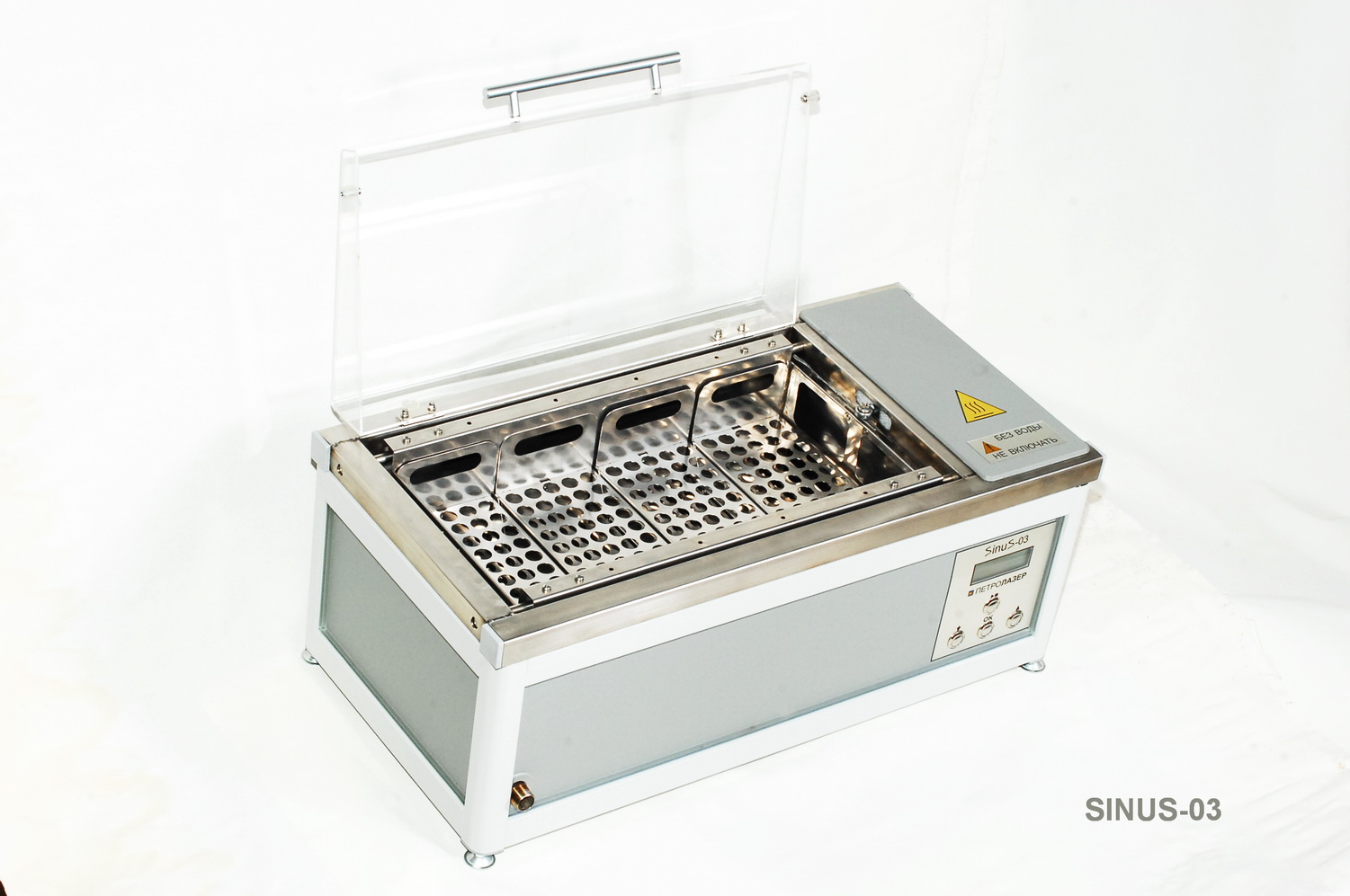 Баня со встряхиванием «СИНУС 03» предназначена для подготовки проб посредством термостатированного нагрева в водяной бане на заданное время и встряхиванием (перемешиванием) с заданной частотой  (например — при инкубации, гибридизации и т. д.).