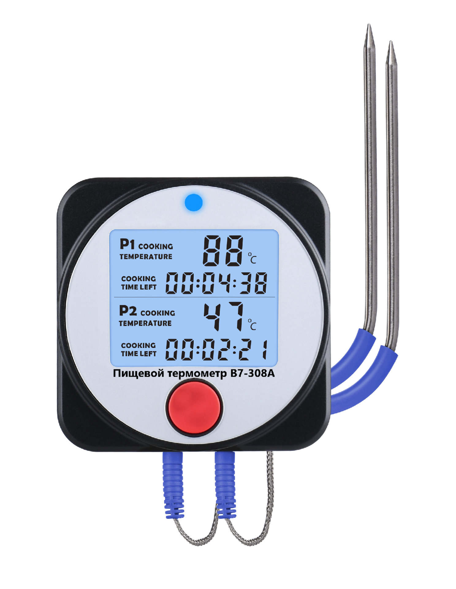 Модель В7-308А – это погружной (проникающий) термометр контактного типа с датчиками выносного исполнения для удалённого контроля температуры при заморозке, охлаждении или горячей прожарки (в печи, духовке, на гриле, в первую очередь барбекю – BBQ) пищевых продуктов. Термометр может быть также использован для контроля процесса изготовления резин и пластмасс.