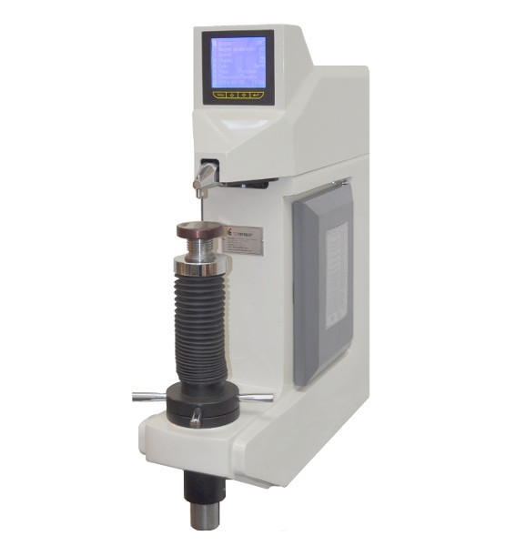 Обеспечивает полуавтоматический режим измерений твердости. Имеет электромеханический привод с мотором, обеспечивающим зацепление грузов на 60, 100, 150 кгс, соответственно. Специальная конструкция системы нагружения позволяет проводить измерения на образцах сложной формы. Шкала твердости и соответствующая ей испытательная нагрузка выбираются в табло электронно-цифрового блока (далее ЦБ). Предварительная нагрузка задается вручную поворотом подъемного винта, процесс нагружения отображается на табло ЦБ. Задание, выдержка и снятие основных нагрузок, вывод результата на табло ЦБ происходят в автоматическом режиме.