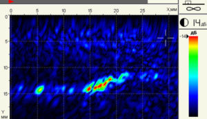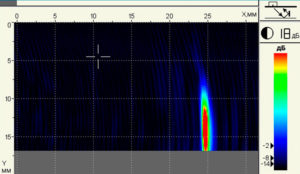 • Возможность проведения ультразвукового контроля вдоль линии сварного шва без поперечного сканирования, за счет большого размера апертуры антенных решеток и сканирования виртуальным фокусом на дальние расстояния, что существенно сокращает время на подготовку околошовной поверхности сварных соединений, повышая высокопроизводительность контроля.