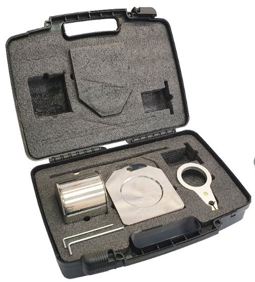 — Вискозиметр ВЗ-246 (исполнение 2) с поверкой; — Штатив-стойка из нержавеющей стали со встроенным пузырьковым уровнем и стальным приёмным сосудом; — Секундомер: дискретность 0,01с; погрешность 0,1с (поверке не подлежит); — Кейс противоударный, пыле- влагозащищённый.