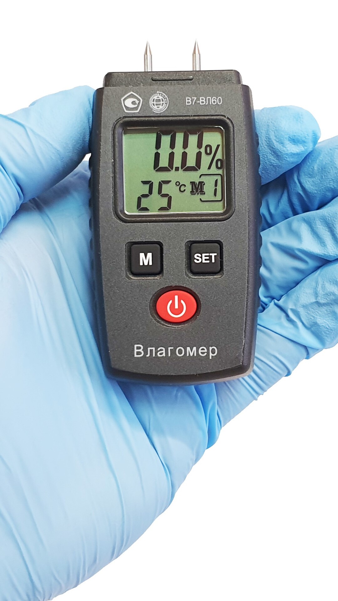Влагомер древесины и материалов игольчатый В7-ВЛ60 предназначен для моментальных измерений содержания влаги в древесине (4 режима для 28 пород), в древесных материалах (древесное сырьё, изделия из древесины и древесного волокна, картонные, бумажные и бамбуковые изделия) и в строительных материалах (3 режима: цементный раствор, известковый раствор, кирпич).